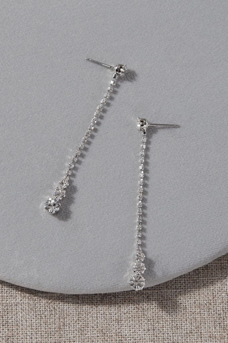 Style No. 57792301; Color Code: 007 Part of a special collection from BHLDN. For the full assortment, visit BHLDN.com. A linear silhouette gives these crystal-studded drop earrings a distinctively modern look. Post closure Rhodium silver-plated brass, Swarovski crystal 2.5"L; 0.3"W Made in the USA