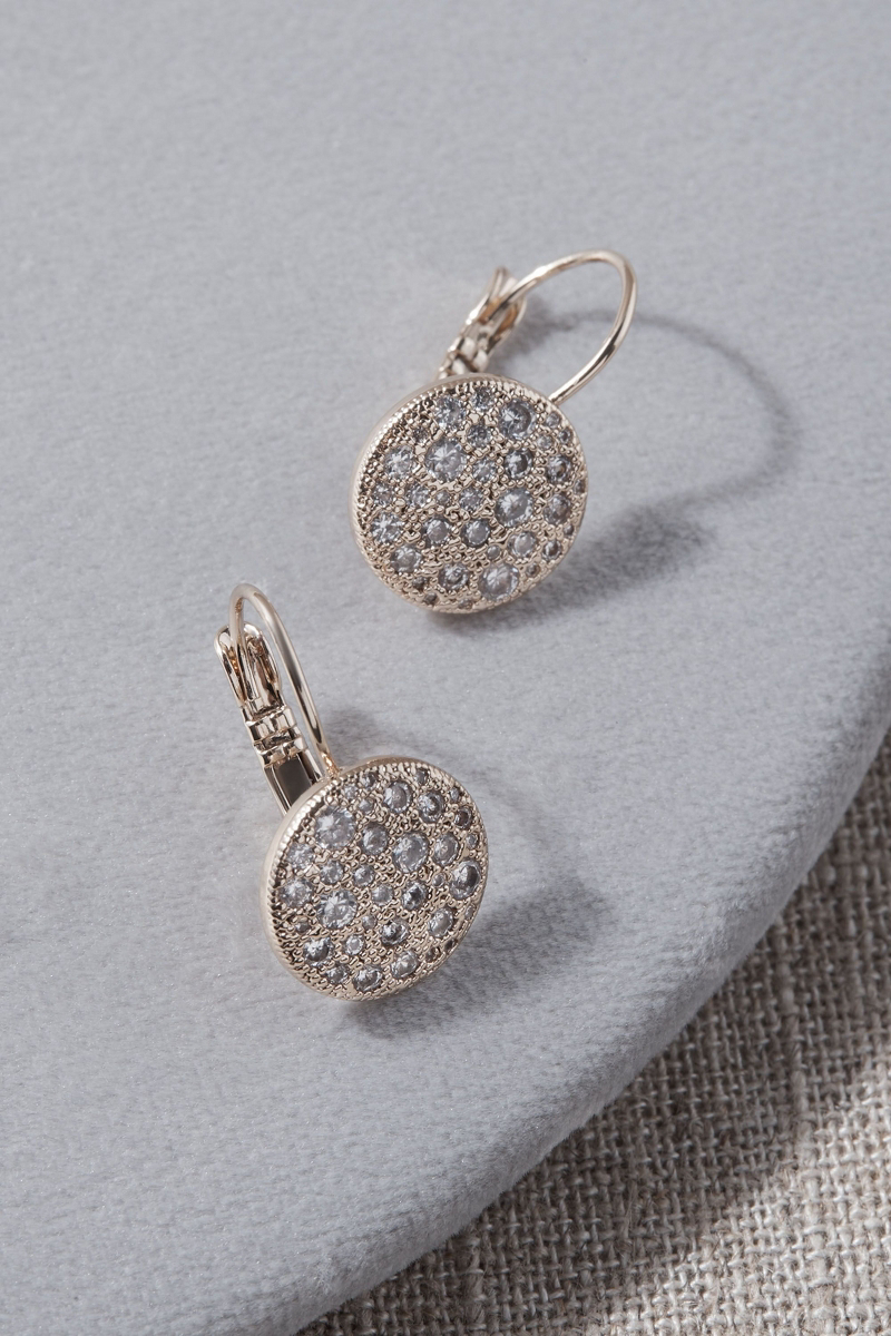 Style No. 56269640; Color Code: 070 Part of a special collection from BHLDN. For the full assortment, visit BHLDN.com. These modern discs are dusted with crystals for a guaranteed flash of sparkle anytime you turn your head! Lever back closure 0.9"L; 0.5"W Gold-plated brass, cubic zirconia Imported